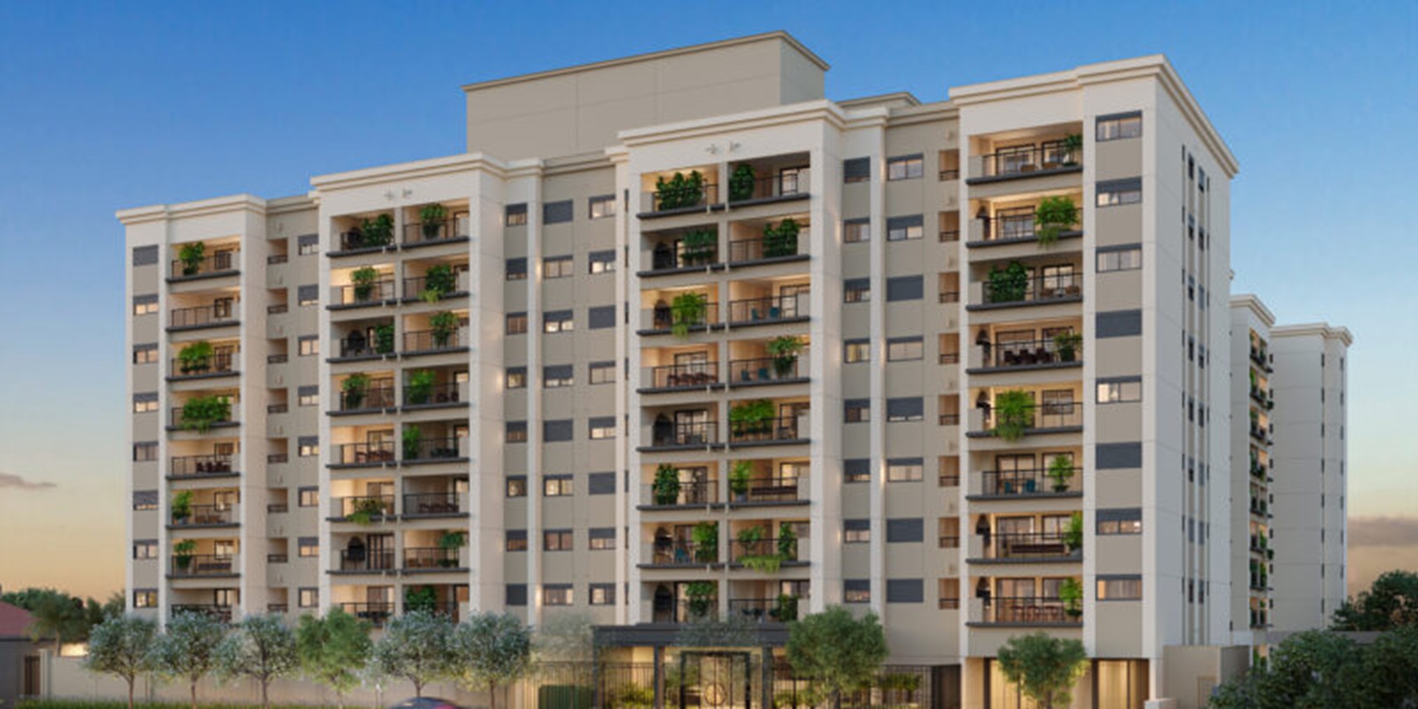 • Empreendimento composto por 2 torres, com 2 subsolos e térreo de área comum, e cada torre possui 8 pavimentos e ático.